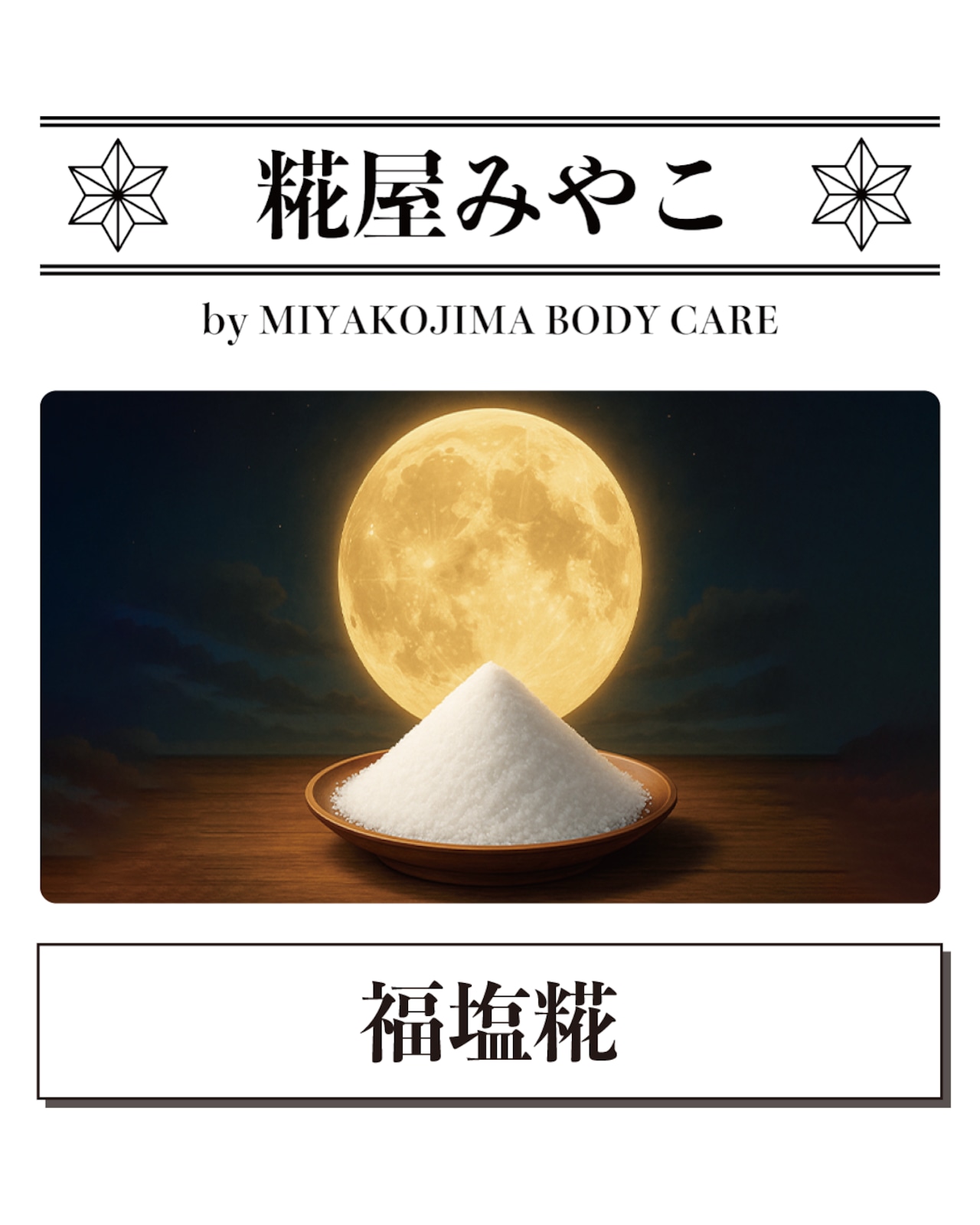 宮古島の満月のお塩「福塩」樣です。お寺の住職だった今は亡き祖父が命名したみたいです。満月の夜の海水で塩を作ってくれる人を探していたところ、今作ってくださってる方のお父樣が引き受けてくださったみたいです。そのお塩を満月で月光浴させて更にパワーチャージしてから醱酵させました。和多志自身もアーシングしてから仕込みました!
