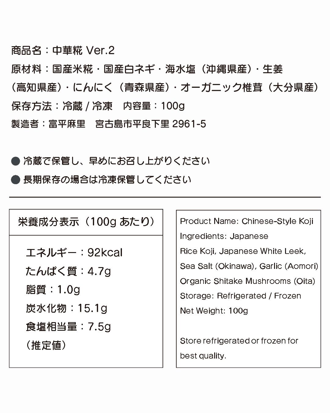 原材料:国産米糀・国産白ネギ・海水塩(沖縄県産)・生姜